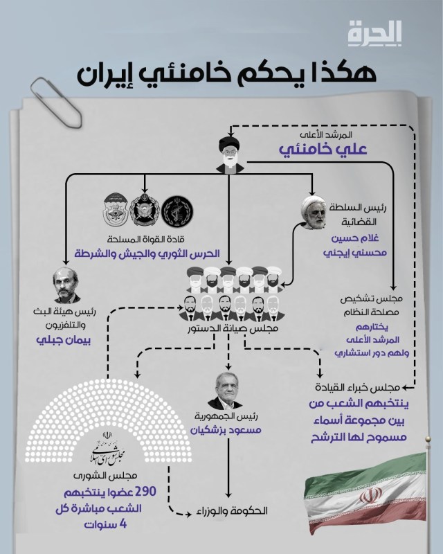 يقوم النظام السياسي الإيراني على مبدأ ولاية الفقيه، الذي يقضي بأن تكون السلطة العليا بيد رجل دين كبير.